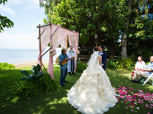 輝かしいハワイの海を望む、ノスタルジックで温かい邸宅ウエディング