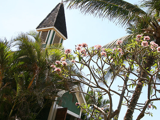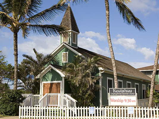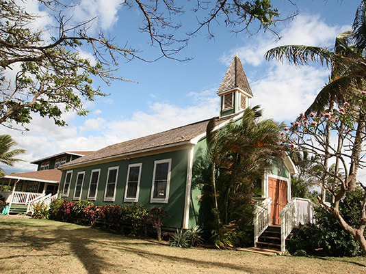 モスグリーンと白のコントラストに、とんがり屋根がとっても可愛らしいケオラホウ教会は、ハワイ語で「新しい生活」を意味し、おふたりの門出にぴったり。ホワイトベースでシンプルな館内は爽やかな雰囲気。気取らないアットホームなウエディングを演出してくれます。教会の開かれたドアの先はブルーオーシャン。雄大な海を見ながら、おふたりの第一歩を踏み出して。