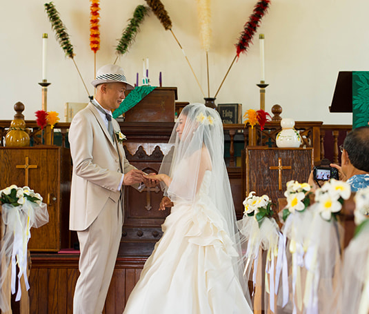 高くそびえる尖塔と時計台で、マウイ島のシンボル的存在のホワイトチャペル。1876年にカメハメハ大王がカアフマヌ女王のために建てた教会で、ここにはマザーズラブ(母の愛)が宿るというロマンティックな伝説も。人気の教会ですが、結婚式を大切に思う心から、挙式は1日1組限定。そのため、ゆったりと伝統的なハワイアンセレモニーが叶います。