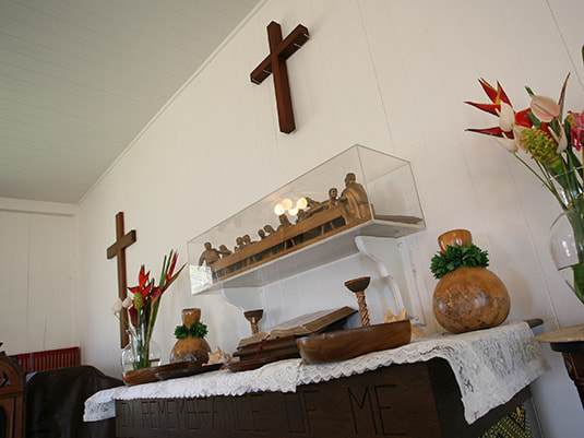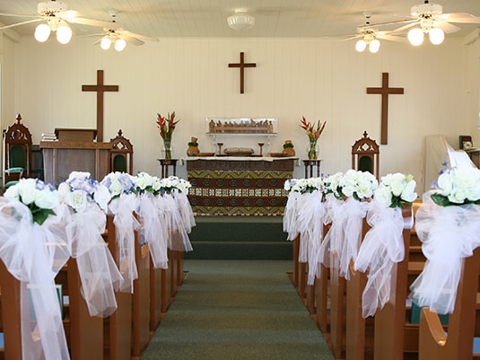 モスグリーンと白のコントラストに、とんがり屋根がとっても可愛らしいケオラホウ教会は、ハワイ語で「新しい生活」を意味し、おふたりの門出にぴったり。ホワイトベースでシンプルな館内は爽やかな雰囲気。気取らないアットホームなウエディングを演出してくれます。教会の開かれたドアの先はブルーオーシャン。雄大な海を見ながら、おふたりの第一歩を踏み出して。