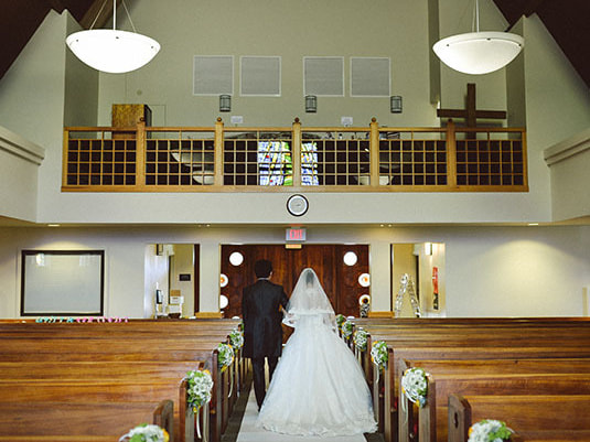 ワイキキから少し離れた閑静なヌアヌの丘に優しく佇む美しいハワイアン教会です。木の温もりを感じるモダンな造りの教会内には、白い壁に反射するステンドグラスの光でとても厳かな雰囲気。ハワイでも珍しい最新型の音響効果を備えたカセドラルタイプのオルガンやコアウッド製の重厚な扉に刻まれる彫刻等、随所に教会のこだわりがあります。祭壇に続くバージンロードは、赤と白の2種類。ウエディングドレスが映える赤、無垢な白、お二人にぴったりのカラーをお選びください。美しい芝生のガーデンでは、シャンパントーストやフラワーシャワー、フラダンス等の演出を行うことができますので挙式後もゲストとのご歓談をお楽しみいただけます。
