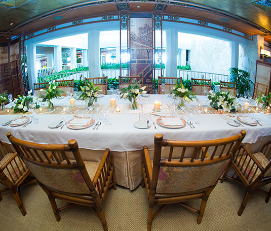 ワイキキ随一のラグジュアリーホテル、ハレクラニのメインダイニング「ラ メール」。シックな色合いで統一された風格漂う空間は、王道のウエディングパーティにぴったり。全席から美しいワイキキの海を臨むことができます。AAA(全米自動車協会)によるレストラン格付けで最高のファイブダイアモンドをハワイで最も長く獲得し続けていることから、味はお墨付き。16名まで収容可能なプライベートルーム(オーシャンサイド)、22名までご利用可能なセミプライベートダイニングルームをご用意。